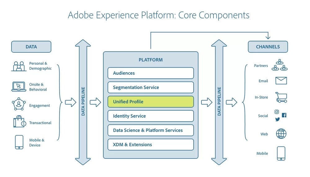 简而言之,AEP 是驱动 Adobe 解决方案与外部业务系统的 数据引擎,让客户数据在任何地方都能发挥作用。