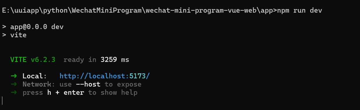 在命令提示符,输入npm run dev