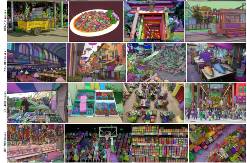 数据规模:SA-1B:11M 图像、>1.1B 掩码(平均 ~100 masks/图像)。这是论文宣称的“迄今最大分割数据集”。