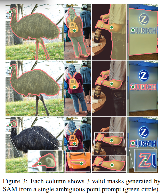 Ambiguity-aware:设计能返回多个 mask(并附置信度),这是处理单点可能对应多个语义对象(shirt vs person)的实用策略,也利于下游选择或人工复核。