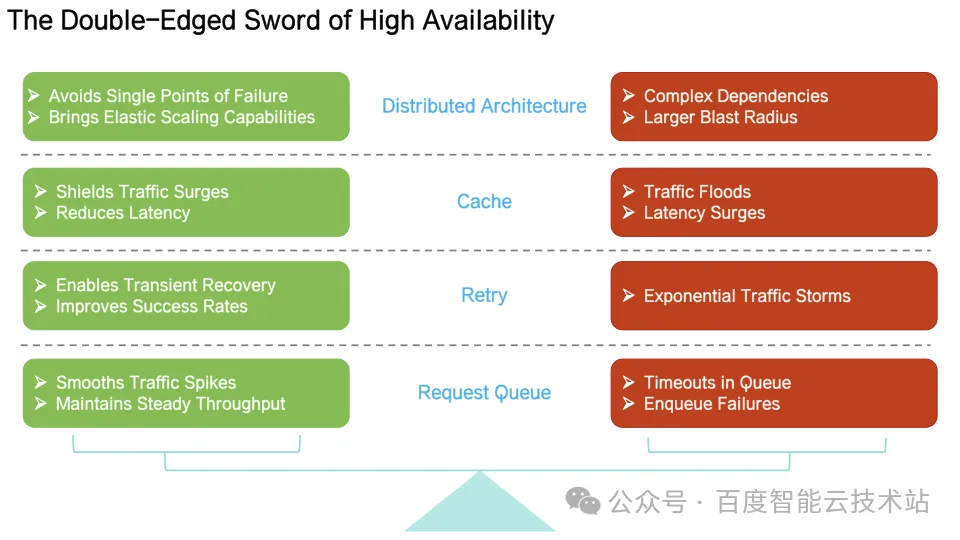 高可用机制的副作用:部分高可用机制(如重试)在极端情况下放大负载,加剧系统恶化;