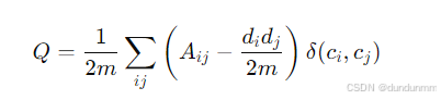 其中 (A_{ij}) 表示节点 (i, j) 是否有边连接,(d_i) 为节点度数,(\delta(c_i, c_j)) 表示节点是否在同一社区。优点:直观、适合大规模网络。