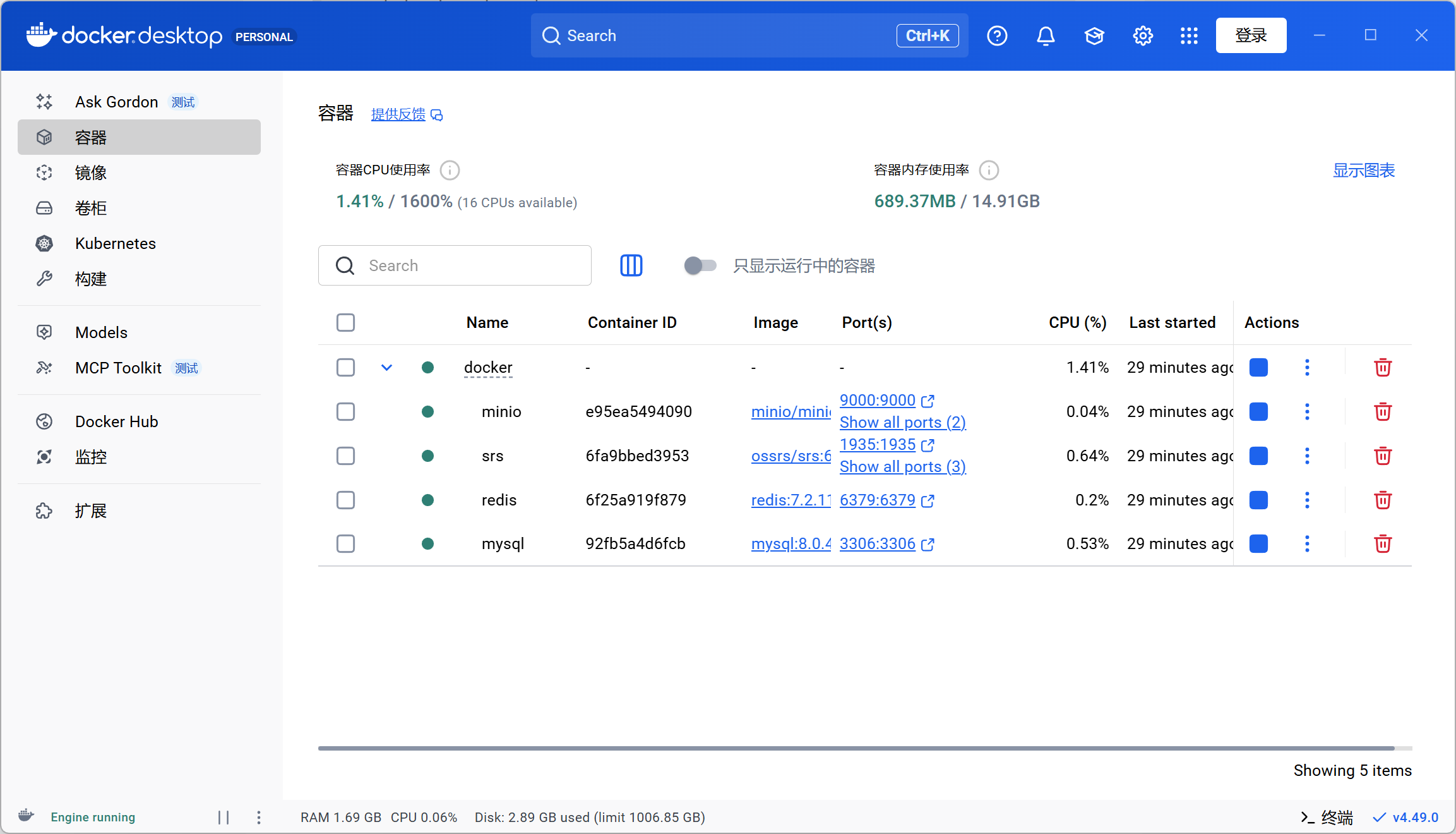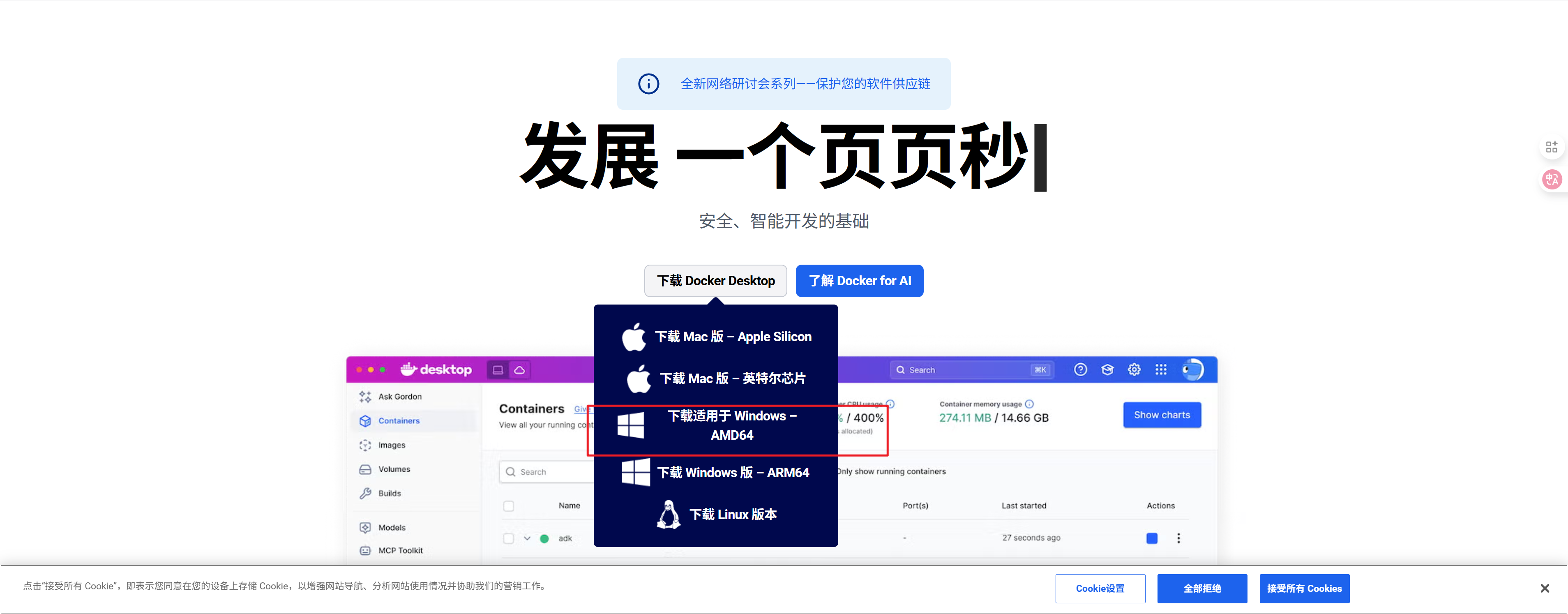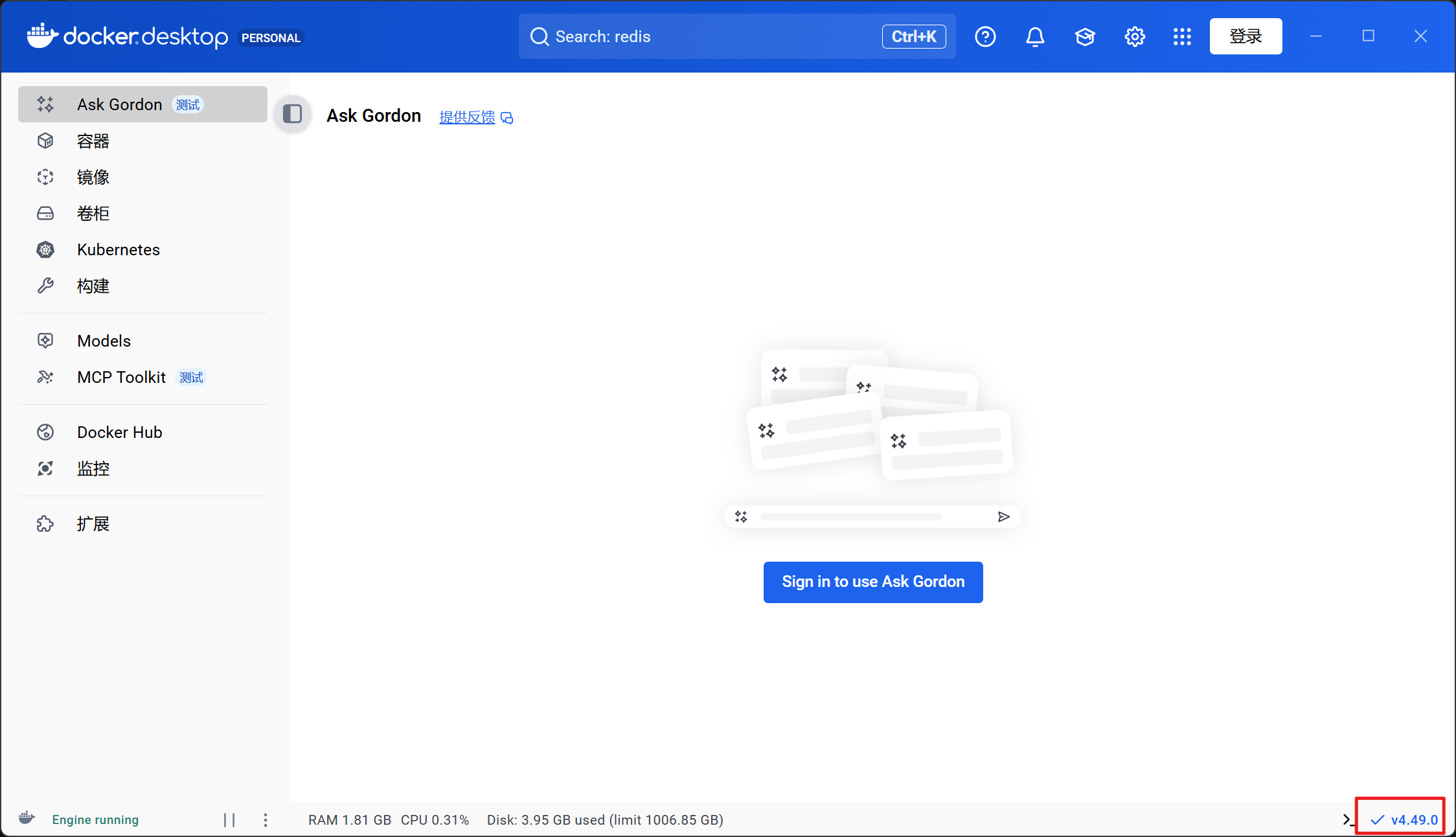 所以安装 Docker Desktop 后,你不需要再单独安装 Docker。你可以使用Docker的命令行,也可以使用GUI管理。