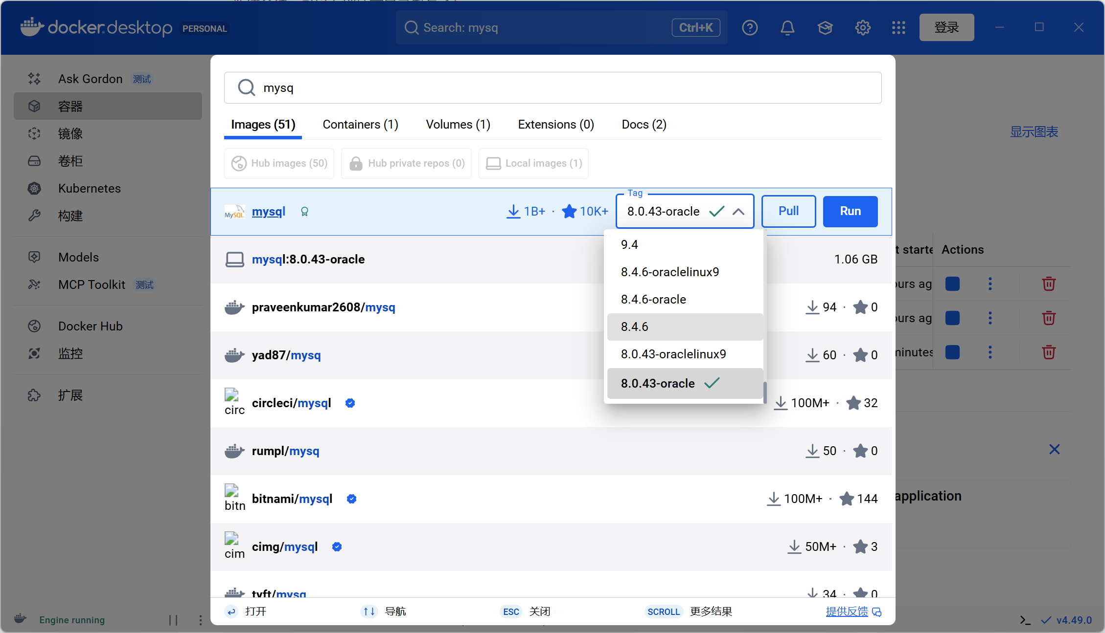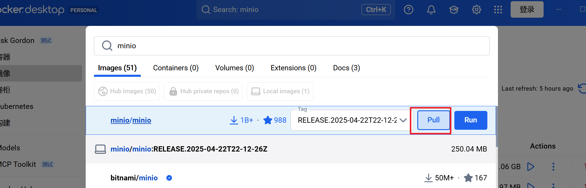 前面说了docker desktop也包含了docker,你可以用可视化desktop弄,也可以直接cmd启一个命令行 docker pull。