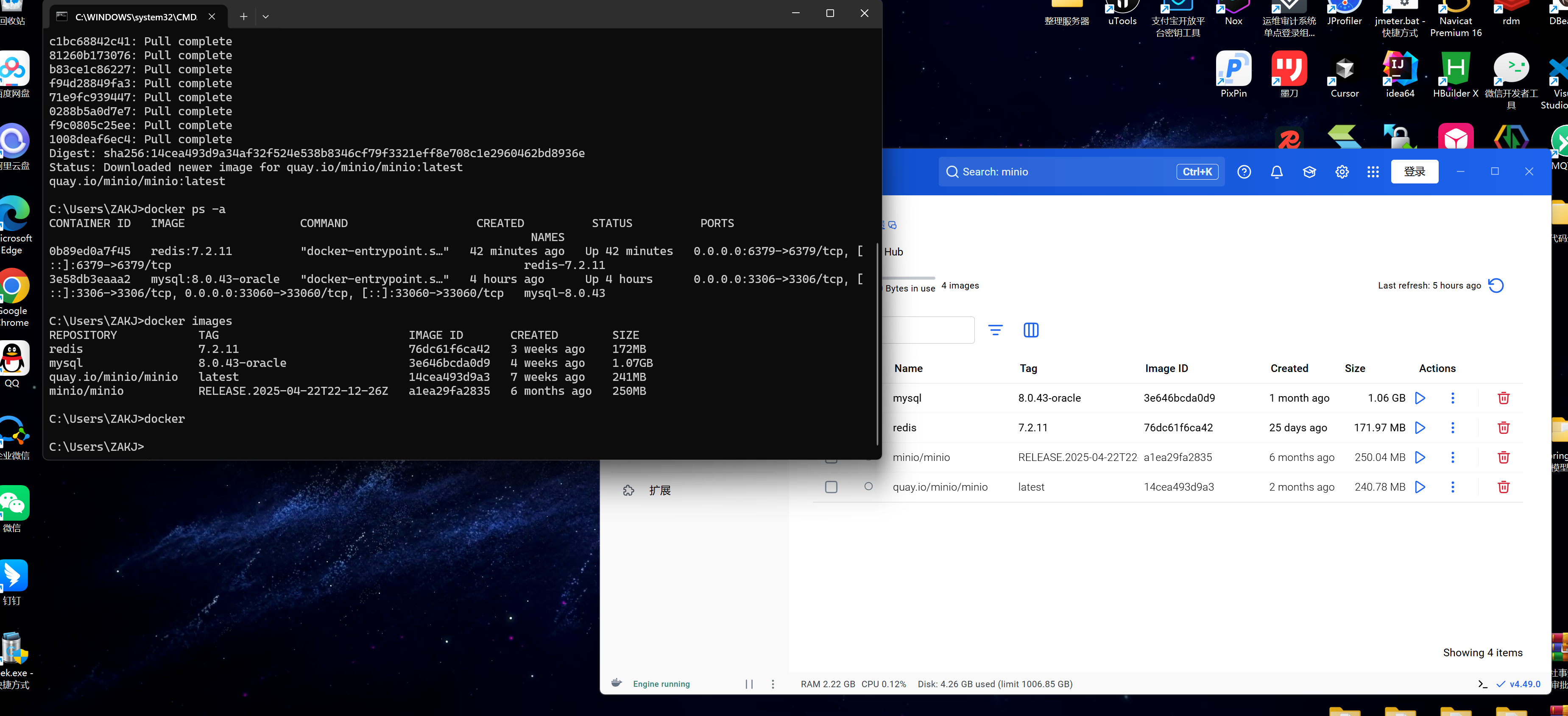 我们以3个镜像为例,分别是 redis \ mysql \ minio :