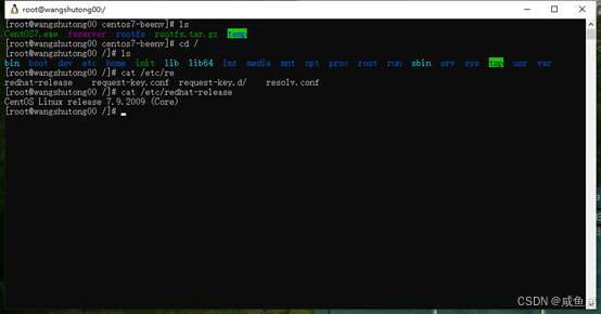 到这里基本已经安装完成了,在CMD中键入命令bash或者wsl即可进入子系统,使用cat /etc/redhat-release查看版本信息