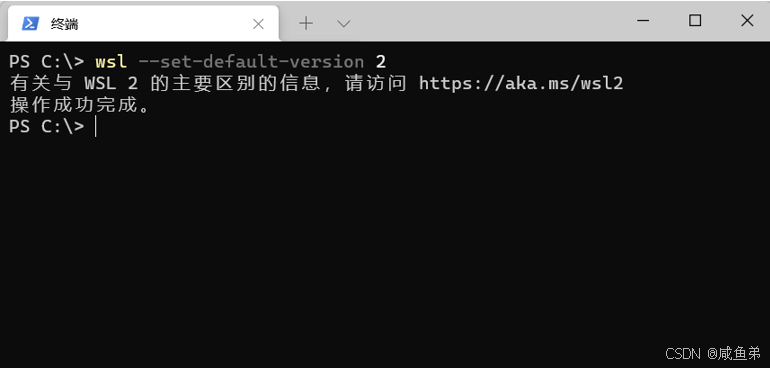 在CMD中输入命令wsl --set-default-version 2,更改新分发的默认安装版本,wsl版本第一代和第二代区别详情可以官网查看,此处建议使用 2,默认情况下,安装的 Linux 分发版将为 Ubuntu。