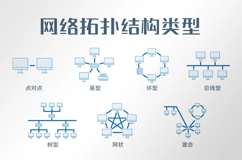 - 应用: 我们现在办公室、家庭组建局域网,99% 用的都是"星型拓扑" (例如,你办公室或家里的电脑通过网线连接到同一个交换机或路由器)。