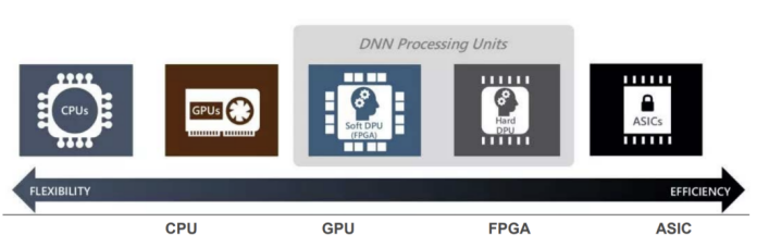 图3: 异构计算中不同处理单元的灵活性与效率权衡