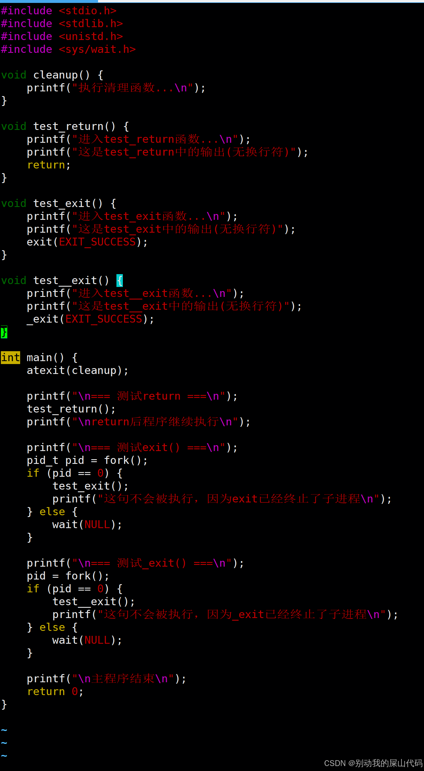 _exit():是系统调用(直接与操作系统交互),声明在 <unistd.h> 中。