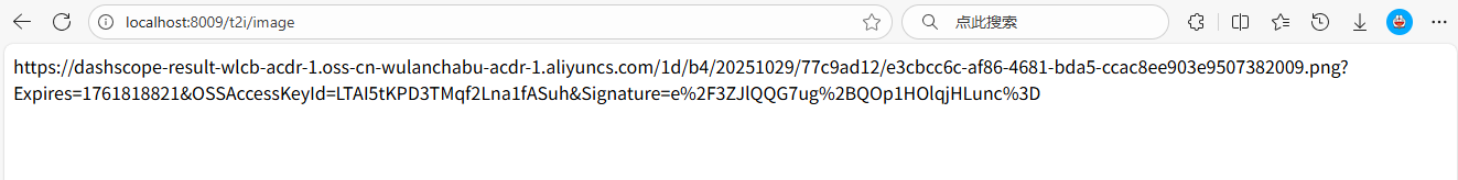 {// img modelpublic static final String IMAGE_MODEL = "wanx2.1-t2i-turbo";@Resourceprivate ImageModel imageModel;/*** http://localhost:8009/t2i/image* @param prompt* @return*/@GetMapping(value = "/t2i/image")public String image(@RequestParam(name = "prompt",defaultValue = "高山与草原") String prompt){return imageModel.call(new ImagePrompt(prompt, DashScopeImageOptions.builder().withModel(IMAGE_MODEL).build())).getResult().getOutput().getUrl();}