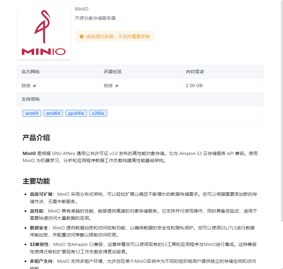 - MinIO 是一个兼容 S3 协议的开源对象存储: