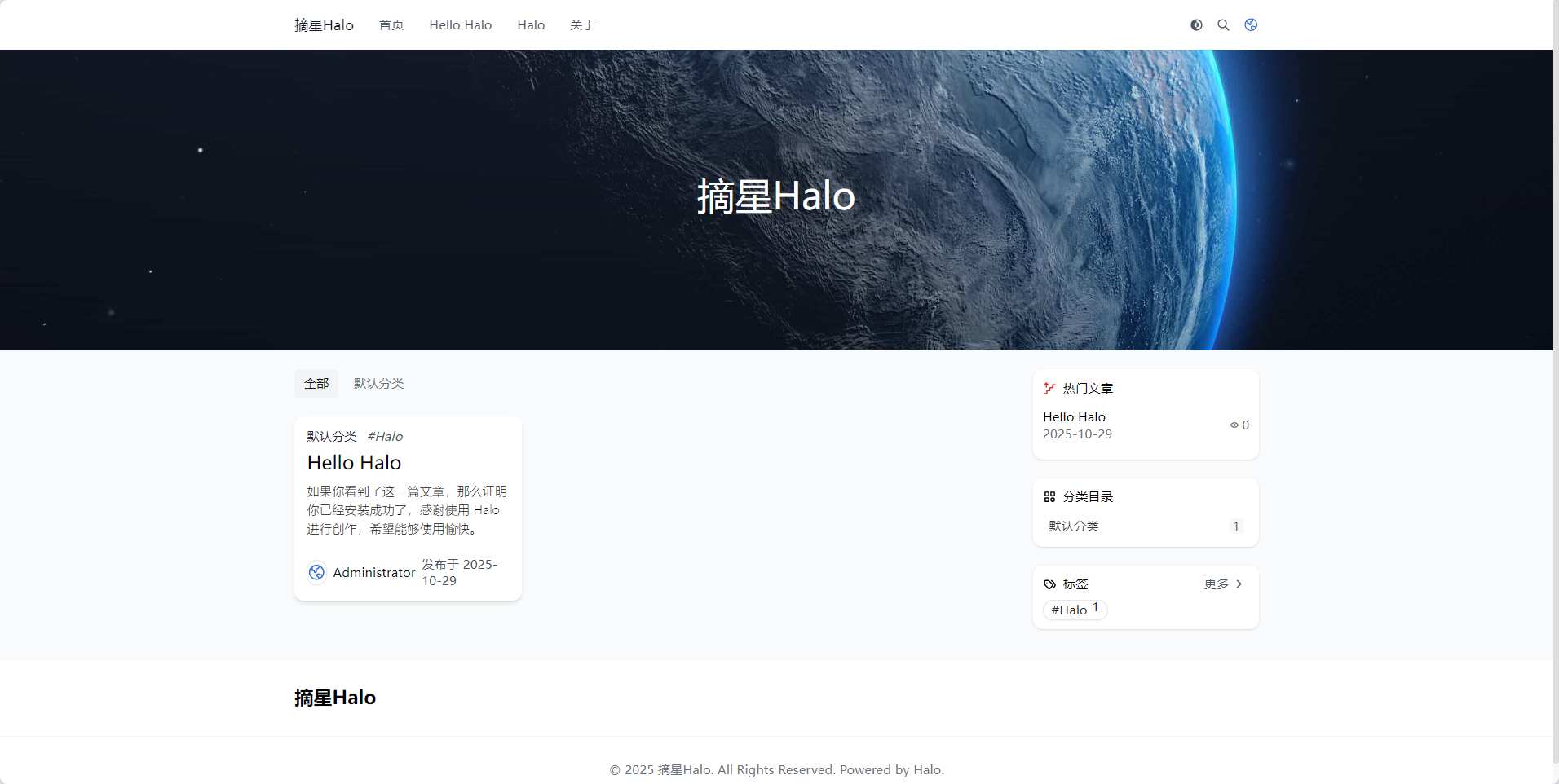 Halo 是一款强大、易用、现代化的开源建站工具(博客系统),由国内开发者主导,采用 Java 语言开发,后端基于 Spring Boot 框架,数据库支持 MySQL、PostgreSQL、H2 等。它致力于为个人和小型团队提供一个简洁、高效、可扩展的内容发布平台。