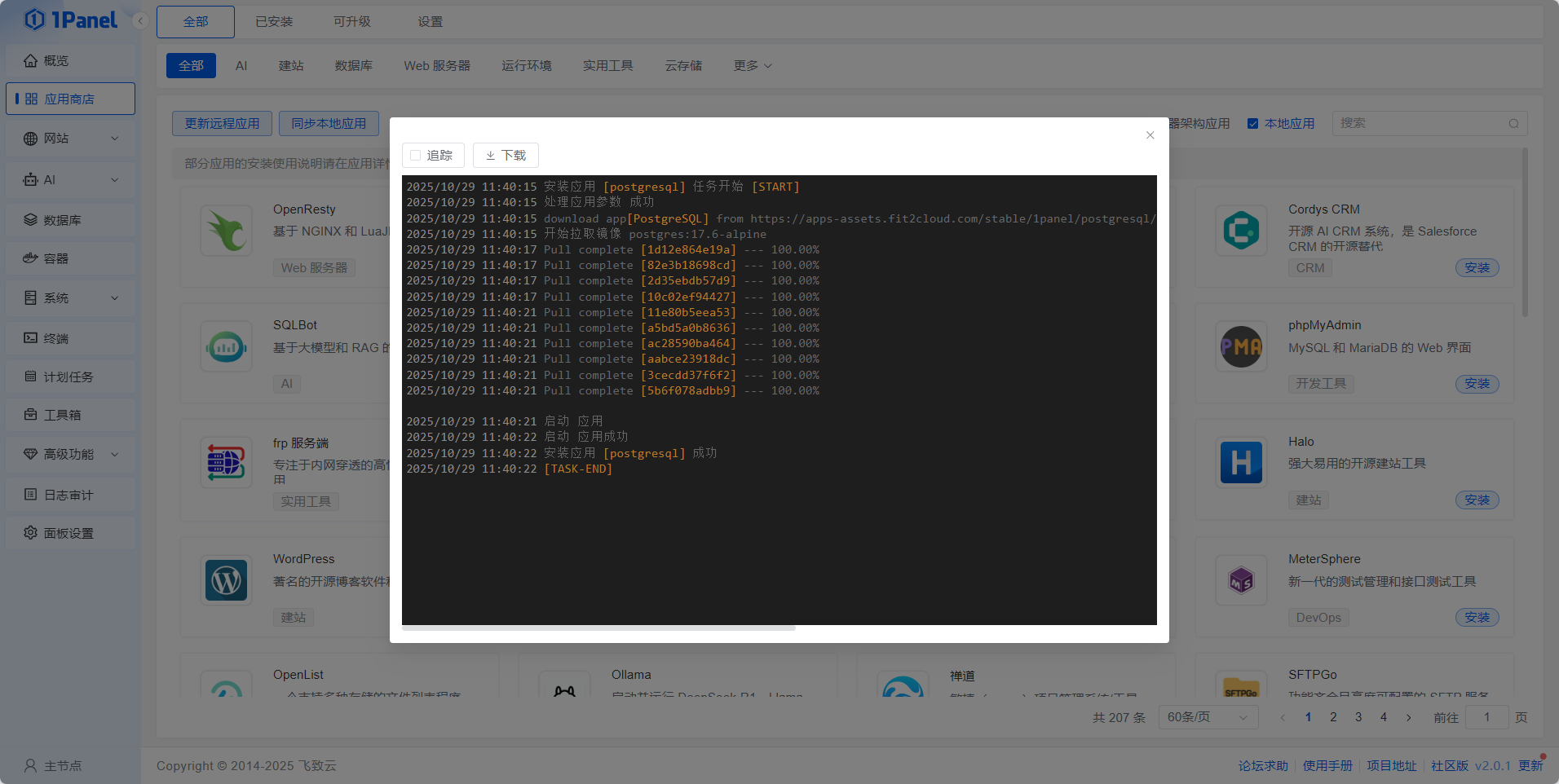 它将复杂的服务器运维工作,转化为简单的点击操作,是现代开发者和运维人员提升效率、降低门槛的理想工具。无论是搭建个人博客、部署企业官网,还是管理数据库和容器,1Panel 都能让你事半功倍