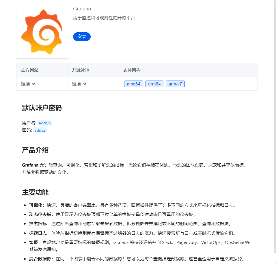 | Docker | - 可视化管理容器:拉取、运行、停止、删除、查看日志 |