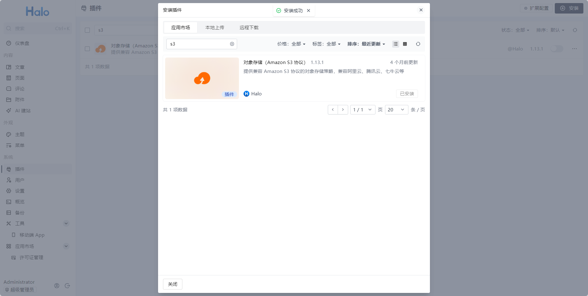- Halo 可配置将所有上传的图片、文件自动存到 MinIO。