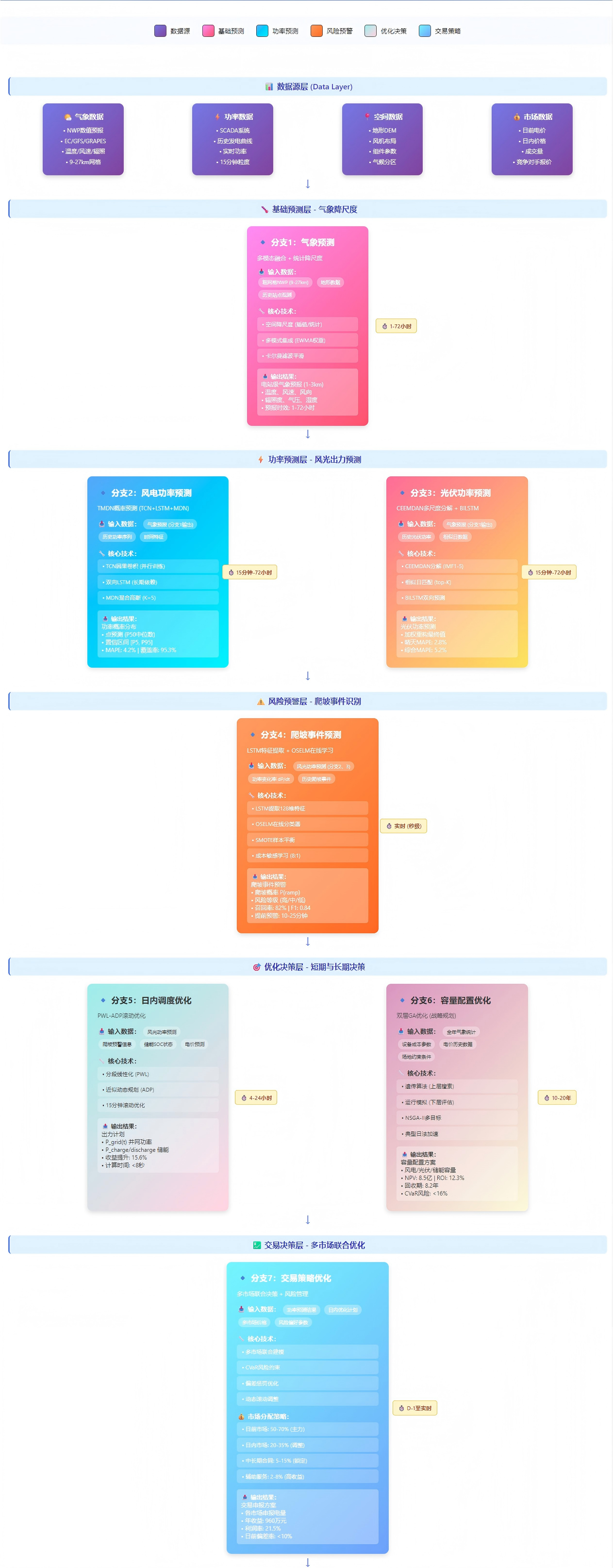 🔹 7分支并行计算架构:气象预测、风光功率预测、爬坡预警、日内优化、容量规划、交易决策