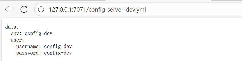 使用下面的地址进行测试:127.0.0.1:7071/config-server-dev.yml