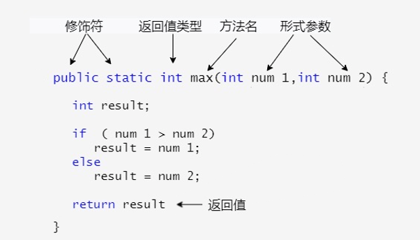 修饰符 返回值类型 方法名(参数类型 参数名) {