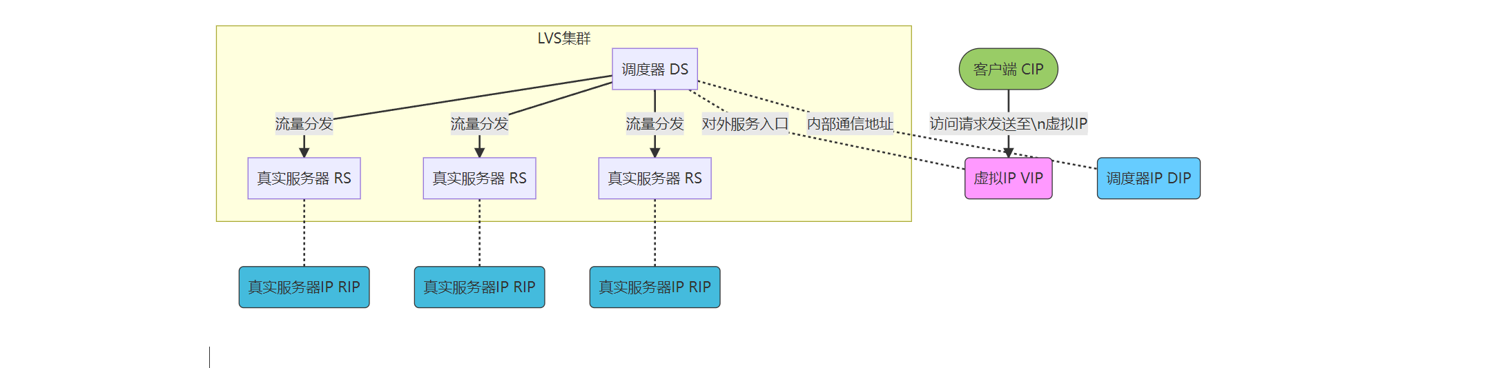 -  VIP:Virtual IP 向外部直接面向用户请求,作为用户请求的目标的IP地址。