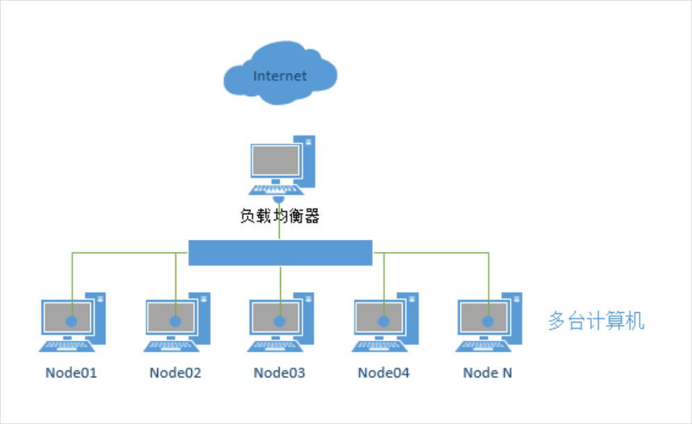 每个节点的性能和配置可能不同,根据算法,可以分配不同的权重到不同节点上,以实现不同节点的资源利用。如下图所示网络访问通过负载均衡器,将请求分布到不同节点上。