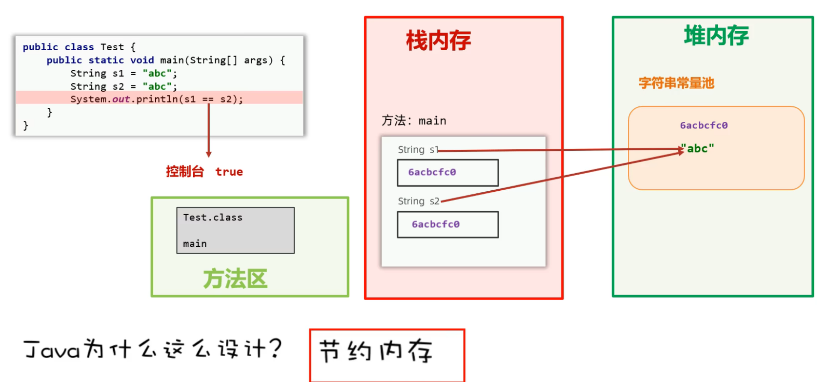 - 只要是以“...”方式写出的字符串对象,会存储到字符串常量池,且相同内容的字符串只存储一份;