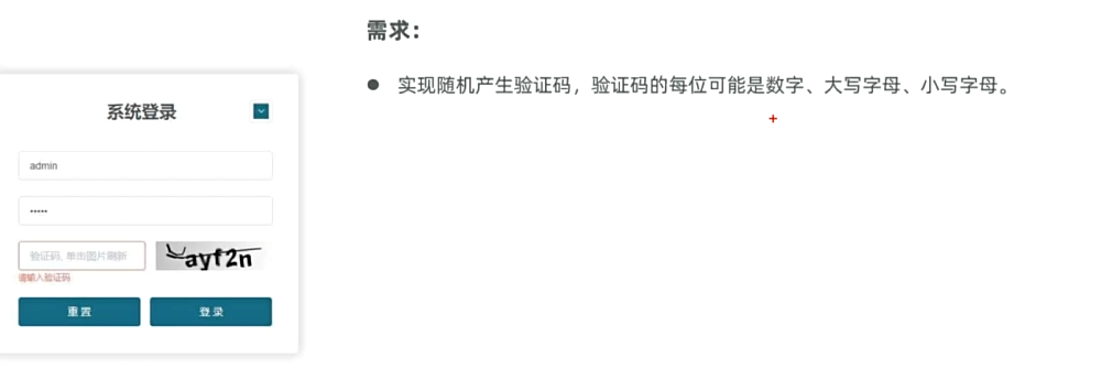 //        System.out.println(a);}//生成一个验证码包含大小写字母和数字//使用Stringpublic static String getCode(int n) {String str = "ABCDEFGHIJKLMNOPQRSTUVWXYZ0123456789abcdefghijklmnopqrstuvwxyz";String code = "";for (int i = 0; i < n; i++) {int number = (int) (Math.random() * str.length()); //[0,1)->[0,str.length())code += str.charAt(number);}return code;}