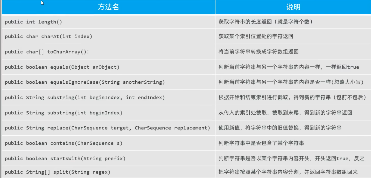 String代表字符串,它的对象可以封装字符串数据,并提供了很多方法完成对字符串的处理。