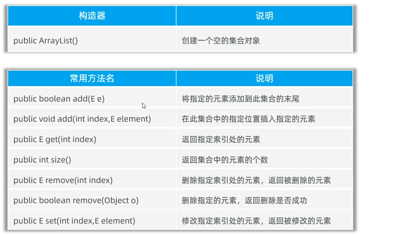 ArrayList<String> stringList = new ArrayList<>();注意:如果把<ElementType>省略不写,这样定义出来的集合可以放任何类型的元素。