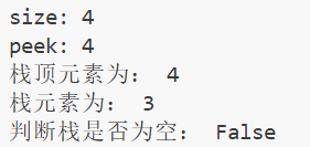 print("判断栈是否为空:",stack1.is_empty());运行结果: