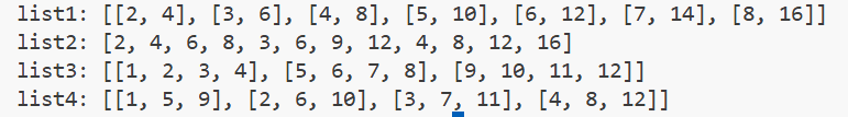 # 定义一个矩阵,每行4个元素,每列3个元素。list3 = [row for row in matrix];