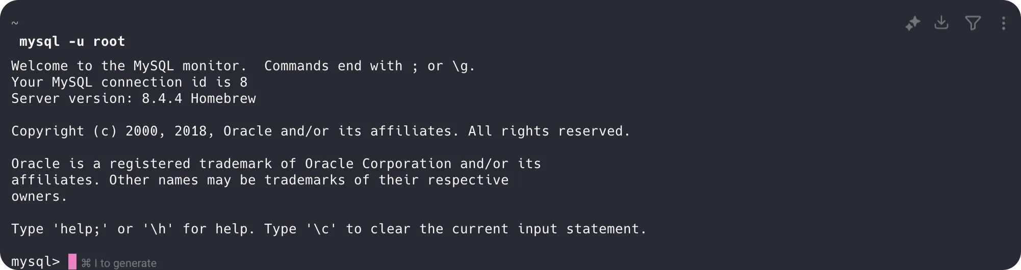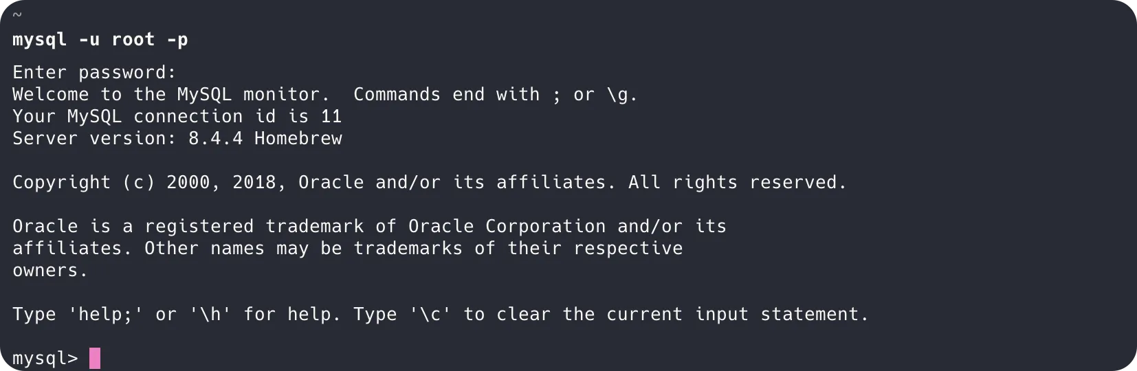 mysql -u root -p输入密码后回车,密码不会显示,错了就回车重来