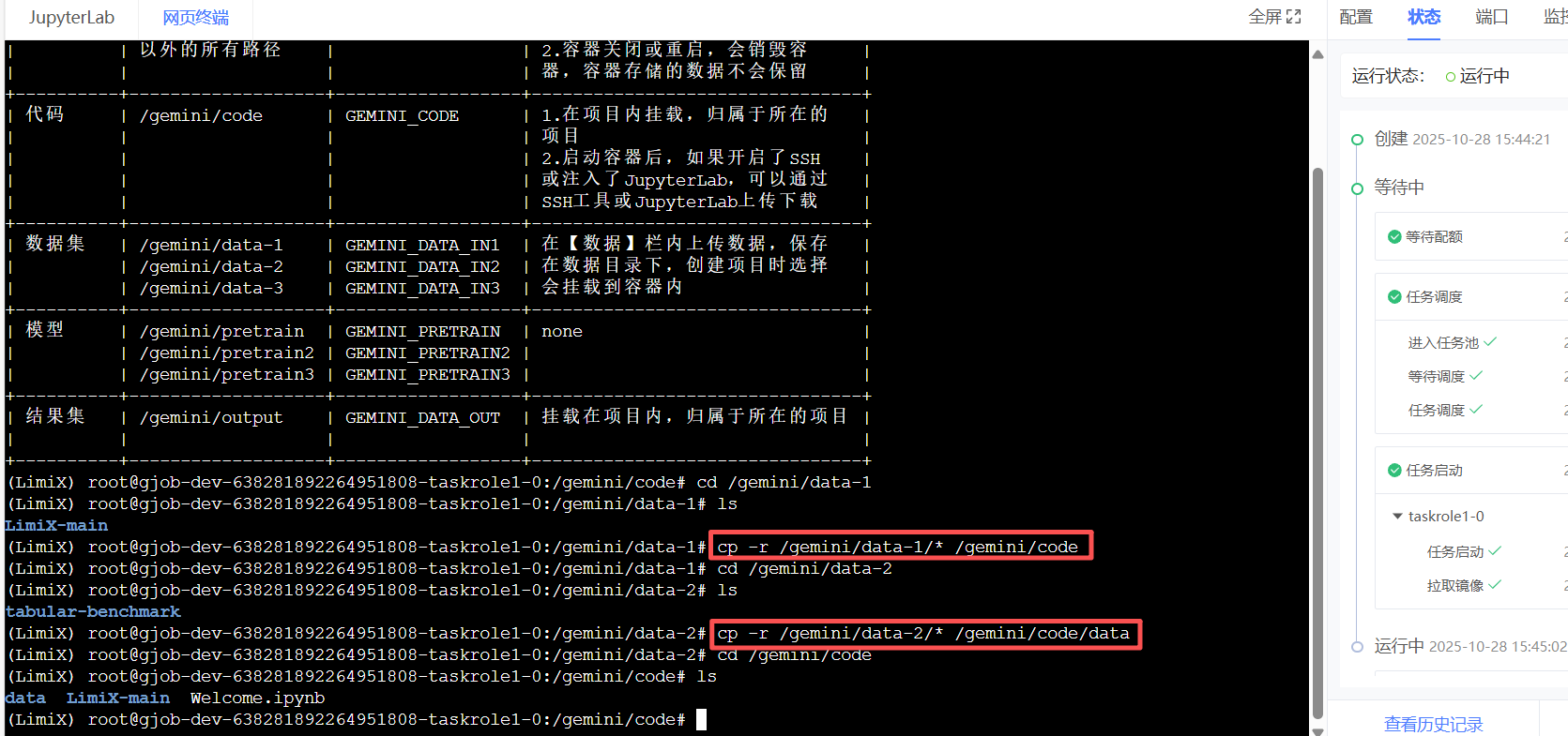 cd到LimiX目录下,执行以下指令,将代码拷贝到 /gemini/code 目录下,将数据集拷贝到 /gemini/code/data 目录下