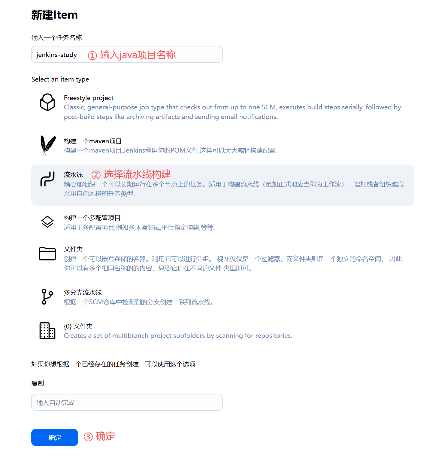 我们以这几步为基础,来新建一个 Jenkins 流水线,帮助我们完成自动化部署。