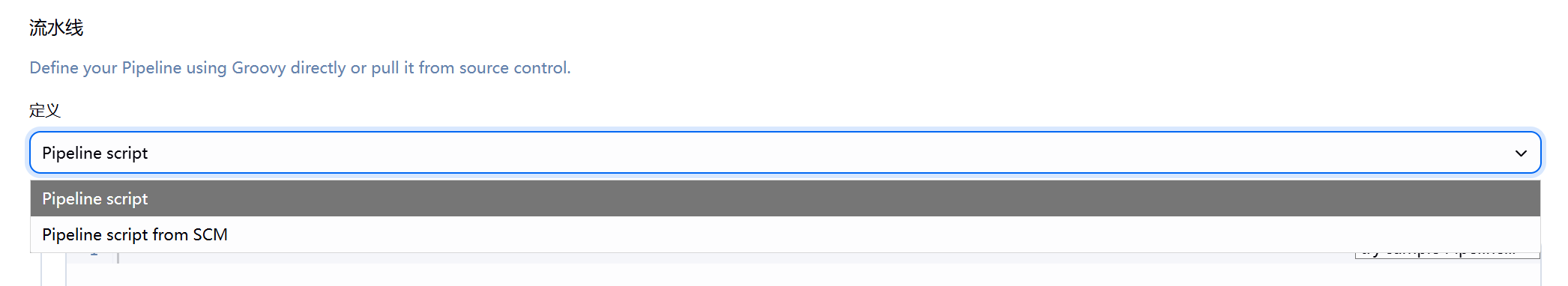 Pipeline script:自己在下面编辑框内编写流水线脚本。