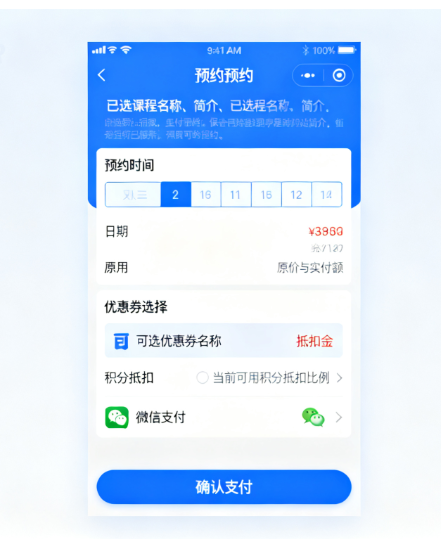- 确认信息: 再次确认课程名称、老师、时间、地点(线上/线下)、价格。