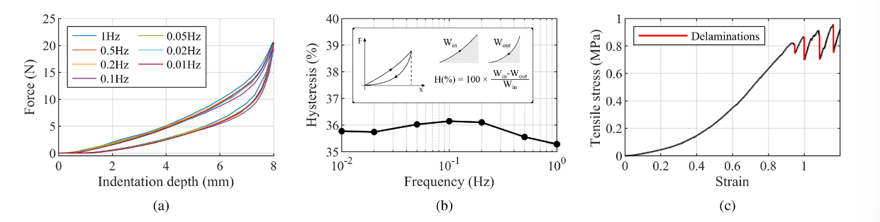 力学滞后(图 5 (b)):按压和回弹的力差(滞后)在 “人类眼眶皮肤” 的范围内(眼眶皮肤较薄,弹性接近机器人皮肤的需求);