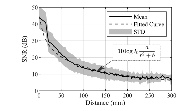 结果(图 6):SNR 随距离增加而降低,但即使距离 EMN20cm,SNR 仍能满足检测需求;感受范围达 178mm(比 EMNs 的间距 75mm 大很多),且多个 EMNs 的感受范围会重叠。