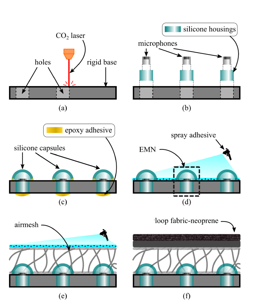 - 封装结构:麦克风外面套一个硅胶穹顶(Dragon Skin 20),形成 “空气腔”;