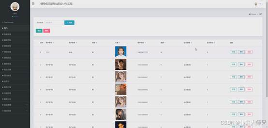 图5.1展示的就是用户管理界面,这个界面是用来由管理者控制和维护用户信息的地方,该界面的核心目的是用户的管理,包括添加、移除或更新等操作。