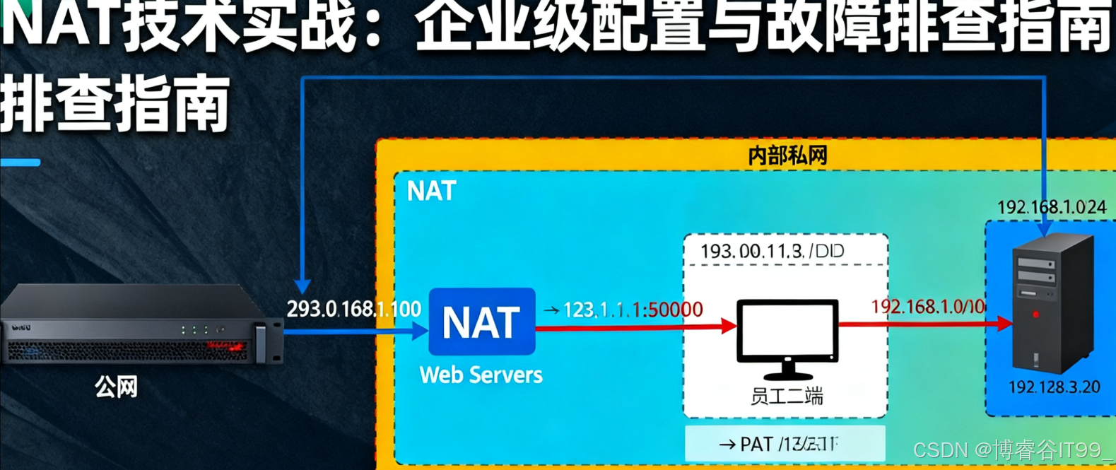 通过本文的配置案例与排查方法,网络工程师可快速完成企业级 NAT 部署,同时规避常见误区,保障内部业务与公网访问的稳定运行。