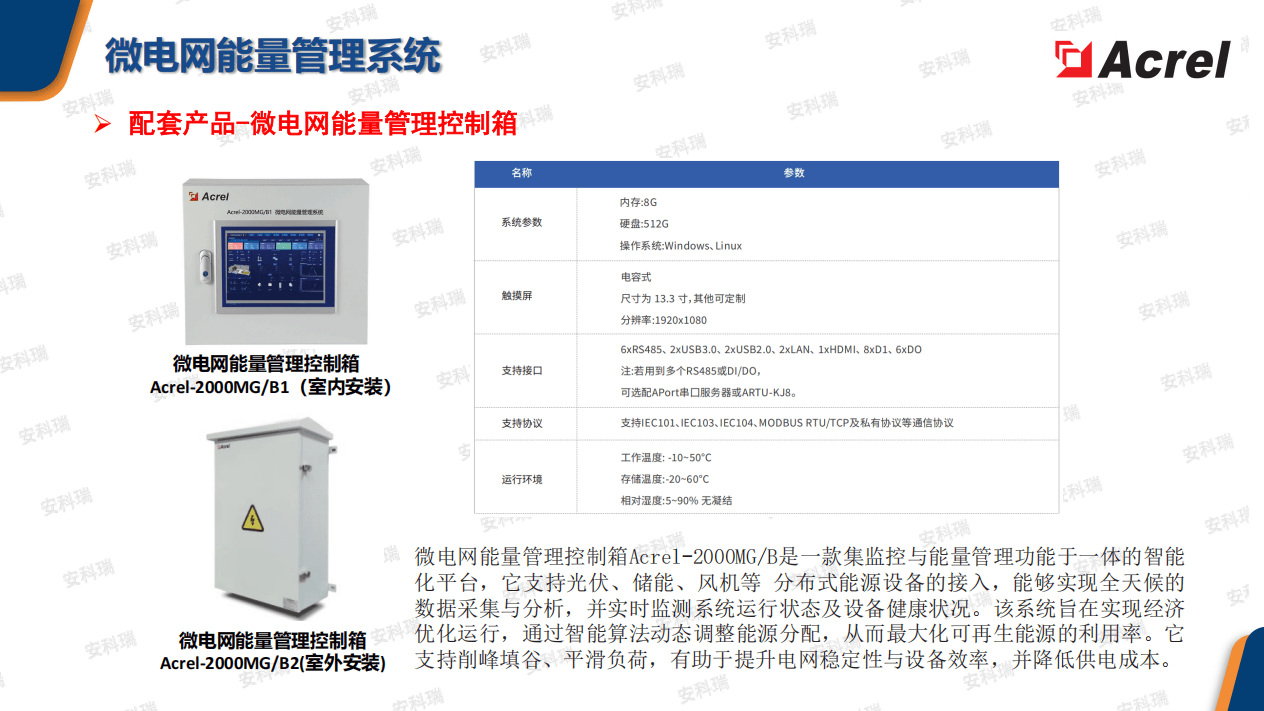 在能源转型与数字化融合的时代背景下,安科瑞Acrel-2000MG微电网能量管理系统以其全面的监控能力、智能的控制策略与灵活的配置方案,正成为企业实现能源精细化管理和绿色低碳发展的关键工具。无论是新建项目还是原有系统升级,安科瑞都能为您提供专业、可靠、高效的系统解决方案。