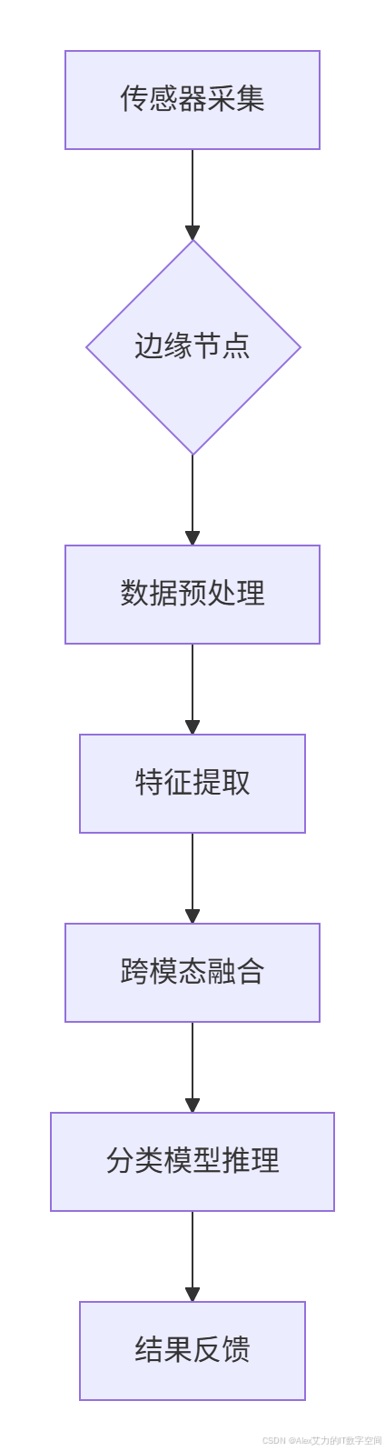 -  模态专属处理: 模态类型 典型处理耗时(Jetson Nano) 优化方法 图像 45ms(ResNet-18) MobileNetV3量化 语音 22ms(Wav2Vec2) 知识蒸馏+INT8量化 时序数据 18ms(LSTM) TCN网络结构优化