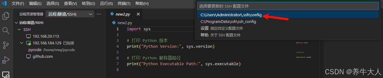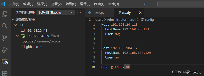 Host 192.168.20.113HostName 192.168.20.113User mwjHost 192.168.184.129HostName 192.168.184.129User mwjHost github.com本次我连接ubuntu的信息是