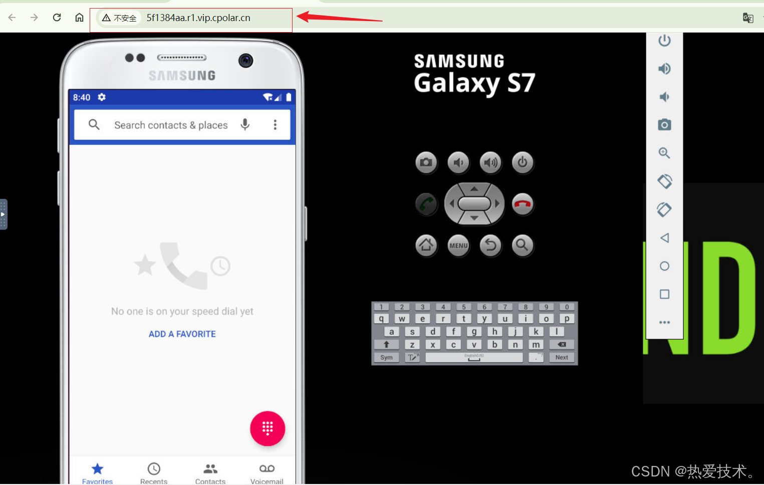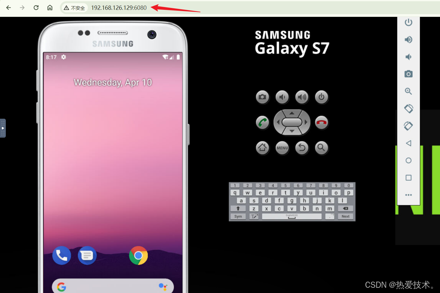 使用上面Cpolar生成的 https公网地址,在任意设备的浏览器进行访问,即可成功看到我们Android 模拟器,简单几步即可实现无需云服务器,无需公网IP实现远程访问.