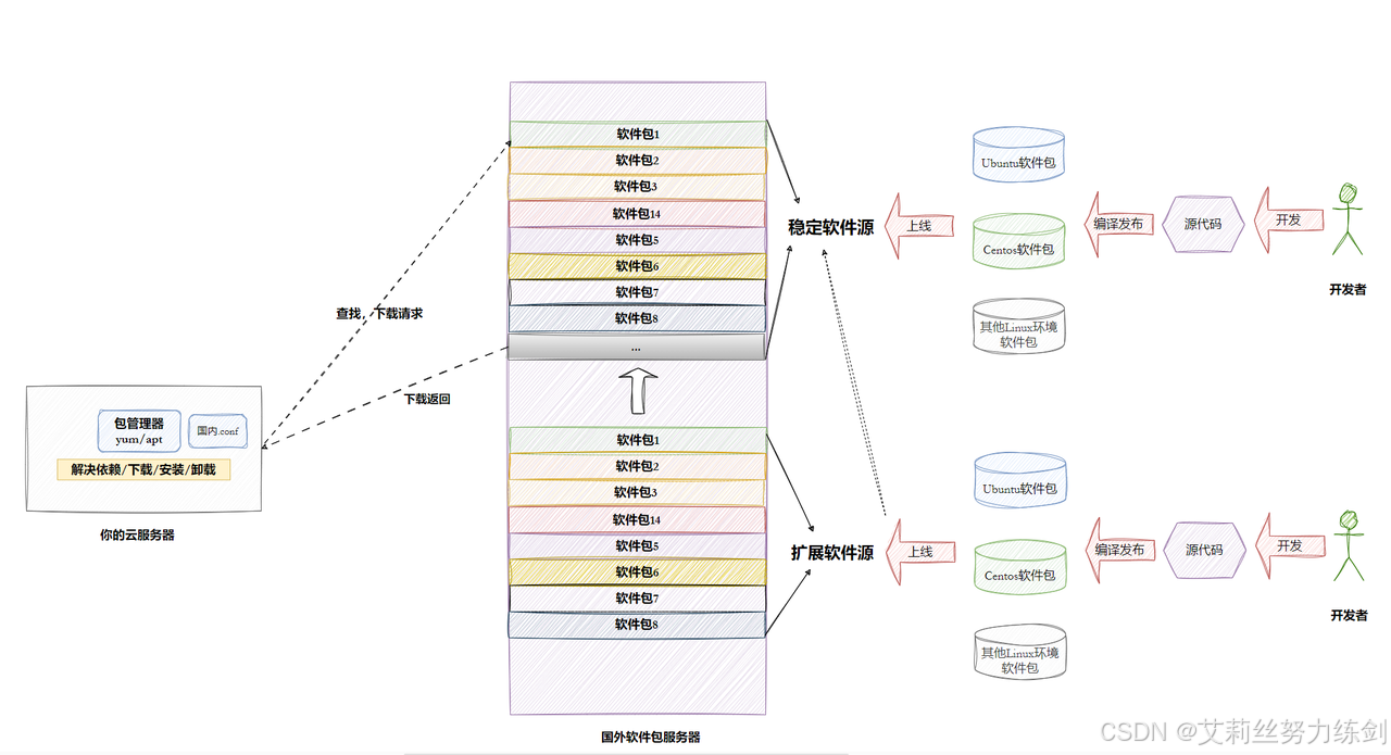 【Linux基础开发工具 (一)】详解Linux软件生态与包管理器:从yum / apt原理到镜像源实战