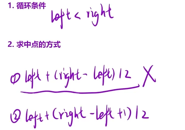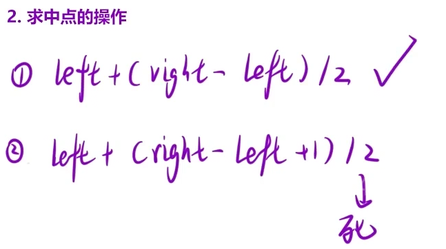(2)细节处理:  循环条件和求中点操作