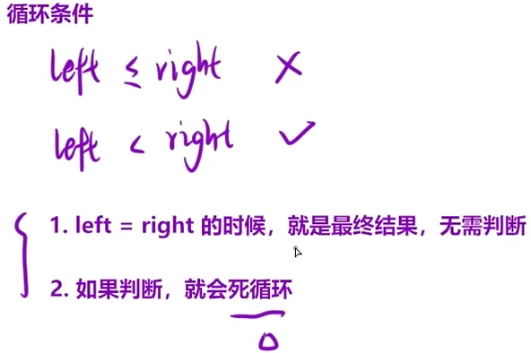 为什么循环条件是left<right 而不是left<=right ?