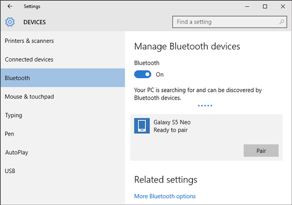 - 在电脑和安卓设备上激活蓝牙(在电脑上,导航到“设置 > 设备 > 蓝牙”;在安卓设备上,进入“设置 > 蓝牙”)。