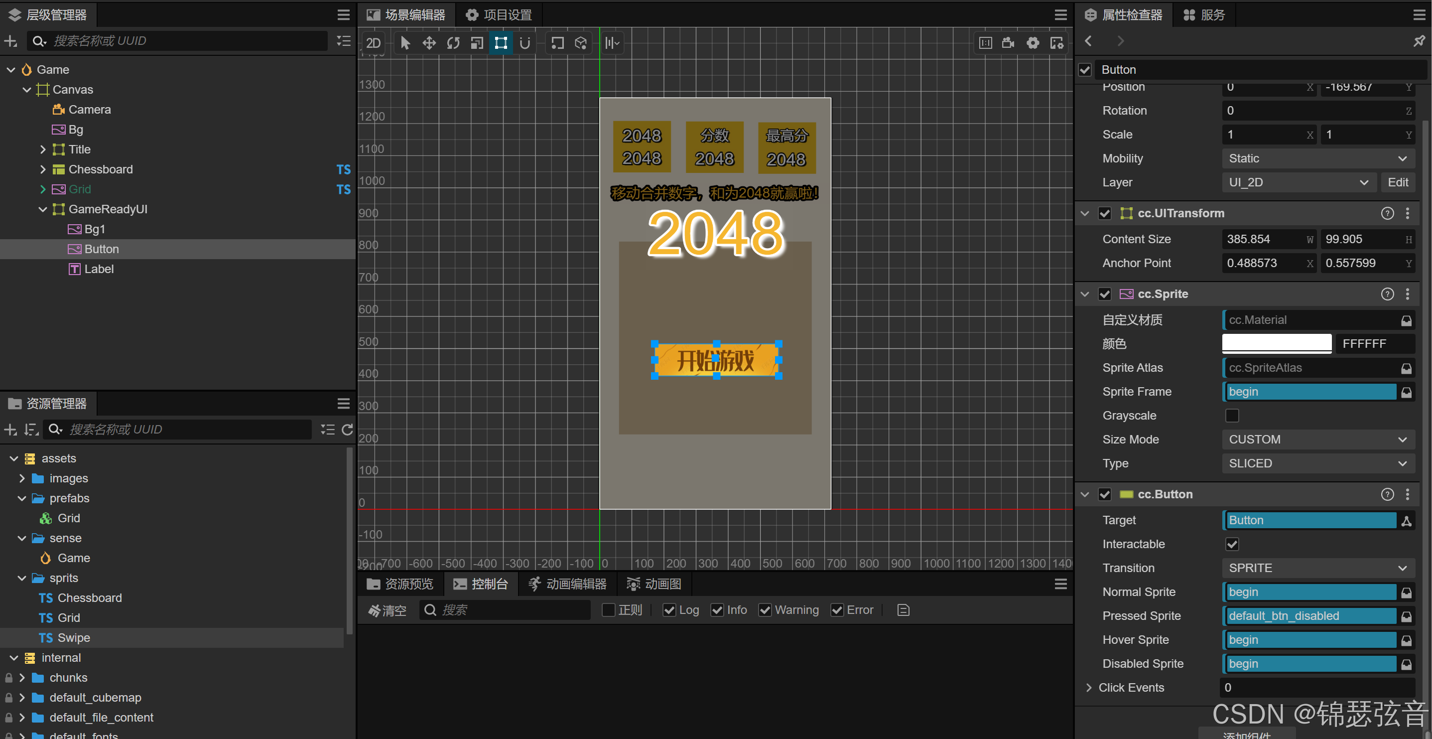 2048游戏笔记3 游戏开始与结束 cocos3.8.7